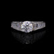 Embrace timeless romance with our Rose Blossom Moissanite Dual-Tone Ring, featuring a graceful open-band design. One end is adorned with a delicate rose in warm rose gold tones, while the other blooms with a sparkling floral cluster of 0.5 carats of round-cut moissanite. The white gold–plated band is lined with...